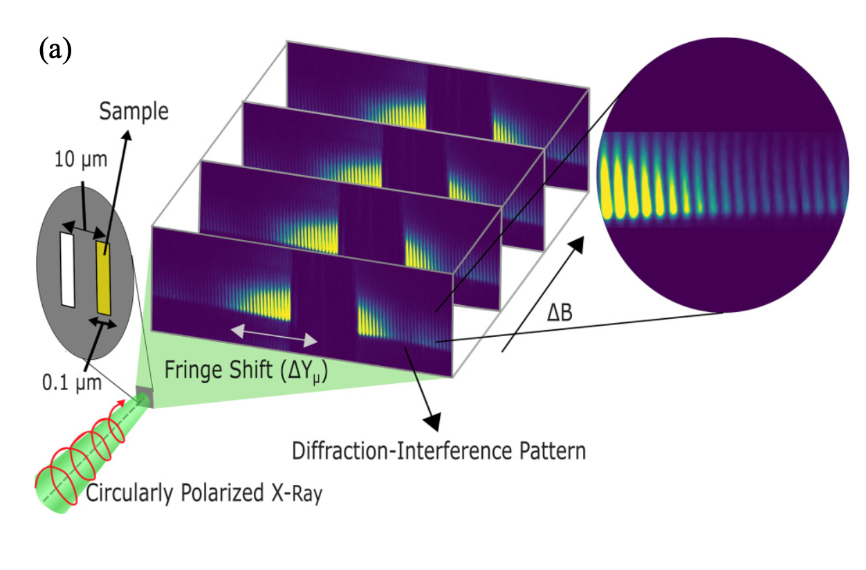 Paper Abstract: We demonstrate an experimental approach to determine magneto-optical effects that combines x-ray magnetic circular dichroism (XMCD) with x-ray interferometry, based on the concepts of Young’s canonical double slit. By covering one of two slits with a magnetic thin film and employing XMCD, we show that it is possible to determine both the real and the imaginary parts of the complex refractive index by measuring the fringe shifts that occur due to a change in the sample magnetization. Our hybrid spectroscopic-interferometric methodology provides a means to probe changes in the magnetic refractive index in terms of the electron spin moment.